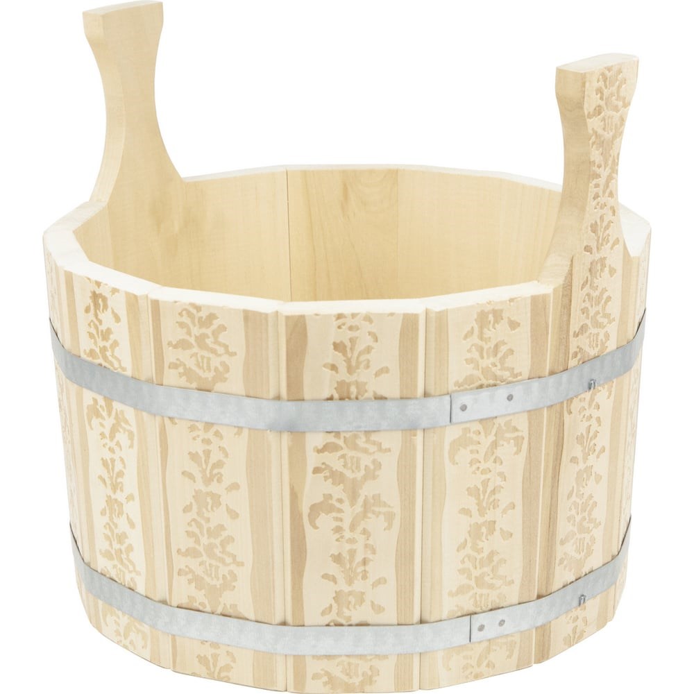 Ушат 9 л, тиснение arto, 12-705 является просто незаменимым элементом, без которого не обойдется ни один поход в баню. Ушат изготовлен из натуральной экологически чистой древесины и не подвержен воздействиям высоких температур и влажности. Данное изделие прекрасно подходит для умывания, обливания, замачивания веника и т.д.