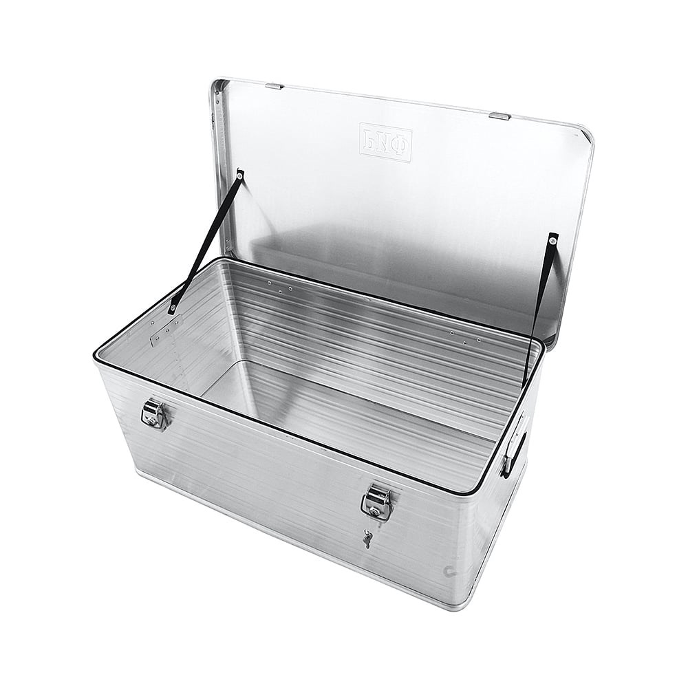 Алюминиевый ящик РИФ усиленный с замком 902х495х379 мм ДхШхВ E902495379 имеет специальную структуру стенок и крышки. Это обеспечивает прочность конструкции, а также полноценную защиту от ударов. Изделие не подвержено деформациям и появлению трещин. Модель дополнена ребрами жесткости, которые надежно защищают содержимое.