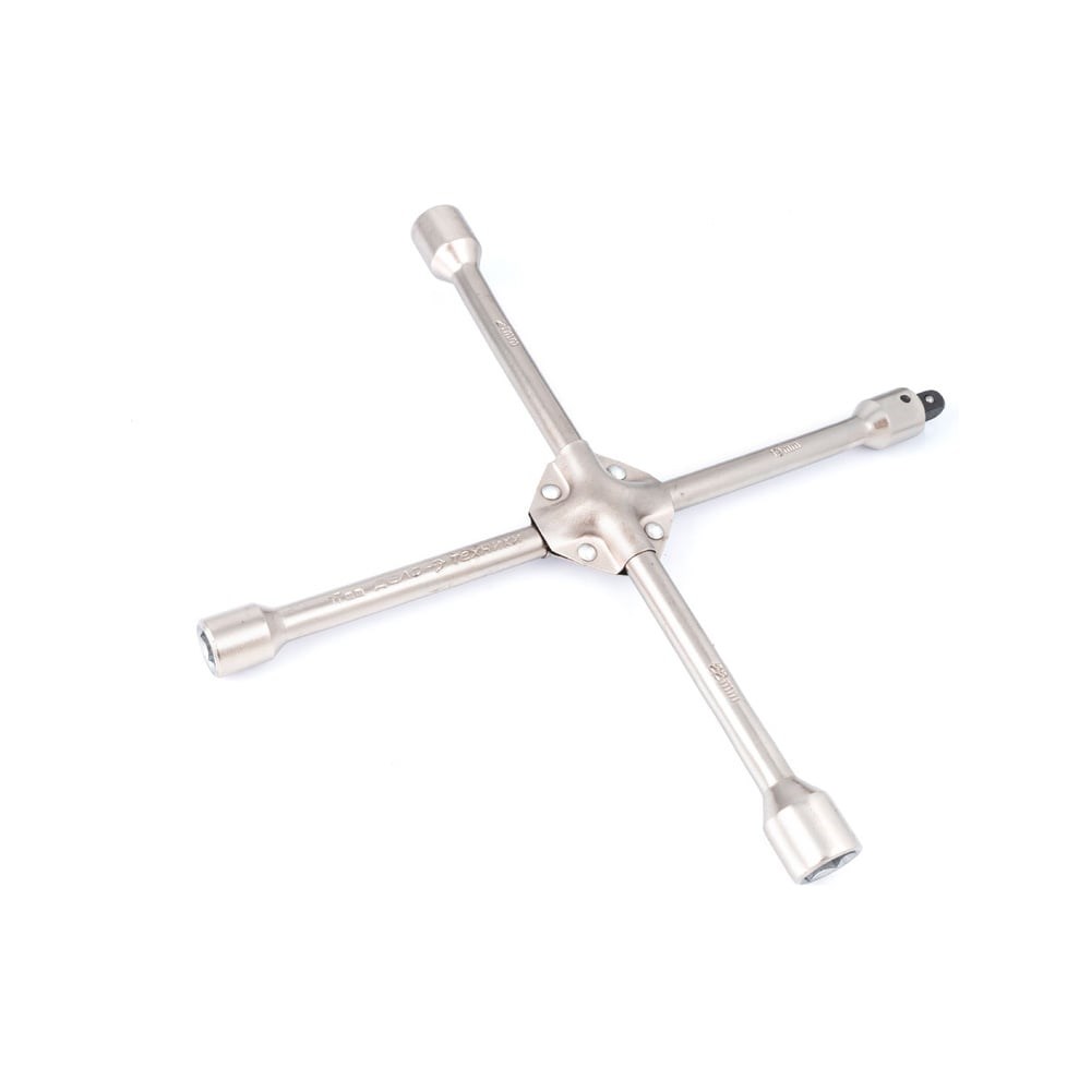 Балонный крестовой усиленный ключ 17 х 19 х 21 х 22 мм с переходником 19мм-1/2" Дело Техники 531222 является хорошей заменой четырем штатным ключам. Применяется во время монтажа и демонтажа колес автомобилей. Выполнен из закаленной стали, что обеспечивает его долговечность. Ключ комплектуется переходником 19х1/2".