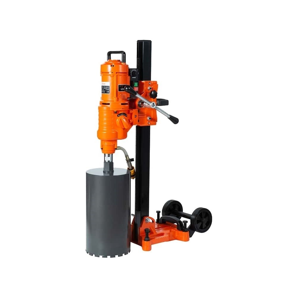 Сверлильный станок с алмазным сердечником, также называемый станком для сверления бетона, представляет собой новый тип инструмента, который может создавать круглые отверстия в различных материалах, включая бетон, кирпич, камень, металл, стекло и т. д. Использование станка для колонкового бурения — это быстрый, точный и эффективный способ сверления отверстий в бетоне и других материалах. Температура корончатого бура регулируется с помощью воды. Он также может избавиться от пыли во время работы. Мягкий пуск, постоянная мощность, защита от перегрузок и бесступенчатая регулировка скорости являются основными функциями станка для алмазного бурения.