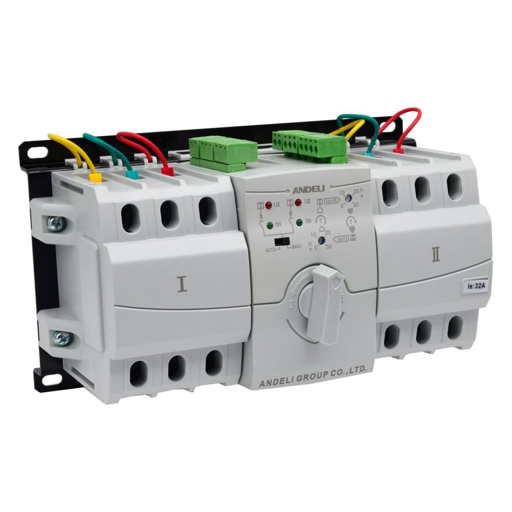 Устройство автоматического ввода резерва (АВР) ANDELI HATS9 предназначено для автоматического перехода на резервный источник питания в электрических сетях переменного тока частотой 50 Гц номинальным рабочим напряжением до 400 В и номинальным током от 6А до 63А.Серия HATS9 обеспечивает автоматическое переключение одной или нескольких нагрузок сети с одного источника питания на другой в целях обеспечения нормального функционирования оборудования на объектах.HATS9 применяется на промышленных, коммерческих и бытовых объектах, а также в жилых домах. HATS9 имеет новый конструктив на основе модульных автоматических выключателей обеспечивает максимальную компактность устройства.ХарактеристикиНоминальный ток 32 (А)Количество полюсов: 3РПКС: 4,5 кАКонтроллер типа В (базовый тип на 3 положения).тип расцепления - С (уставка 5-10 In).Установка интегрированная.Управление генератором: набор 5А реле с сухими контактамиСвязь с противопожарной системой: ДаАвтоматический переход с основного ввода на резервный с самовозвратом;Автоматический режим работы на двух разноцветных вводах;Автоматический переход от сети к генератору.Задержка перевода на второй ввод: Плавно регулируется в диапазоне от 0.2с до 30сЗадержка самовозврата на первый ввод: Плавно регулируется в диапазоне от 0.2с до 30сРассеиваемая мощность не более 5ВтРабочая температура окружающей среды от -20С до +60С.