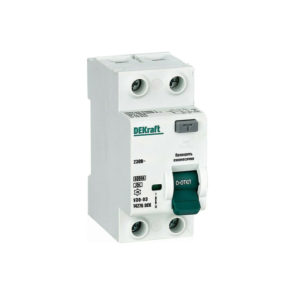 Выключатель дифференциального тока серии УЗО-03 Dekraft2Pноминальный ток 63 Аном.дифф. ток 30 мАэлектромеханическийтип дифференциального расцепителя - Aна DIN-рейкуВДТ устанавливаются в сетях напряжением до 400 В пер.тока. ВДТ применяются для защиты электроустановок от риска возникновения пожаров вследствие утечек тока. Конструкция устройств позволяет эксплуатировать их даже при низкой температуре. При сборке выключатель дифференциального тока (ВДТ) и автоматический выключатель (для защиты ВДТ) устанавливаются последовательно, при этом номинальный ток аппарата должен быть на одну ступень выше — т. е. 20А при установке последовательно с автоматом на 16А, 32А при установке с автоматом на 25А.
