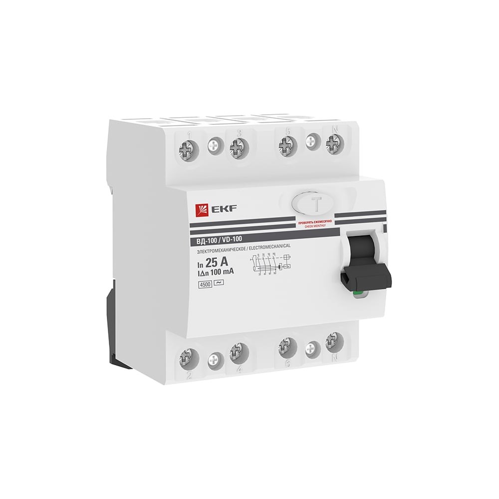 Устройство защитного отключения EKF УЗО ВД-100 4P 25А/100мА PROxima elcb-4-25-100-em-pro