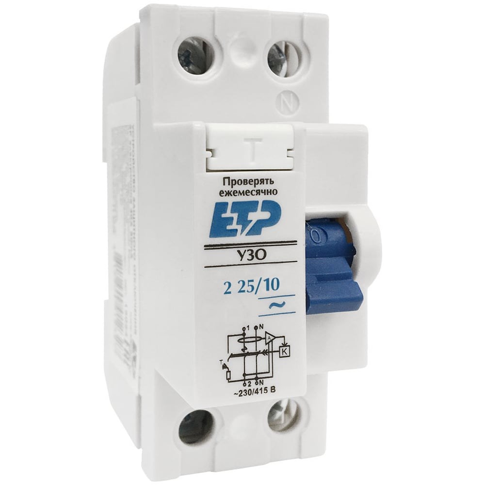 Устройство защитного отключения ETP УЗО 2P 25А тип АС 10 мА 4,5 кА электронное 18019 является наиболее эффективной защитой человека от поражения электрическим током, предотвращая образование опасных напряжений при прикосновении к открытой проводке или к электрооборудованию, корпусам электрических инструментов и машин, оказавшимся под напряжением и для предотвращения возгорания, возникающего вследствие длительного протекания токов утечки и развивающихся из них токов короткого замыкания. Для защиты потребителей от токов перегрузки и короткого замыкания необходимо использовать УЗО совместно с автоматическими выключателями. Корпус и детали устройства выполнены из пластика, не поддерживающего горение, насечки на контактных зажимах предотвращают перегрев и оплавление проводов за счет более плотного и большего по площади контакта.