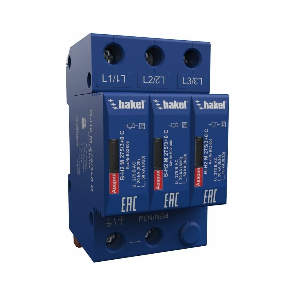 Устройство защиты от импульсных перенапряжений К2 Ключевой Компонент В-Н2 M 275 С/3+0 В02006 применяется в низковольтных электрических сетях на границе 1 - 2 зон молниезащиты (в соответствии с «Инструкцией по устройству молниезащиты зданий, сооружений и промышленных коммуникаций» СО–153-34.21.122-2003) при кабельном подземном или воздушном вводах электропитания в качестве II ступени защиты, в соответствии с: ГОСТ Р 50571-4-44-2011, ГОСТ Р 50571.5.53-2013, ГОСТ IEC 61643-11-2013. Предназначено для защиты фазных проводников от противофазных (поперечных) перенапряжений в цепях L/PEN в системах переменного и постоянного тока. Выпускается на максимальное длительное рабочее напряжение Uc= 275/350 В AC/DC. Способно отводить импульсы тока Imax(8/20) = 50 кА. УЗИП модульной конструкции поставляется в комплекте с допконтактами.