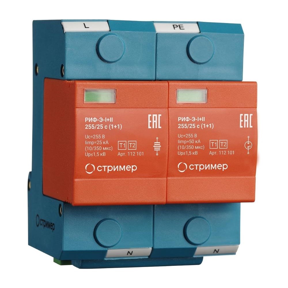 Устройство защиты от импульсных перенапряжений Стример РИФ-Э-I+II 255/25 (1+1)
