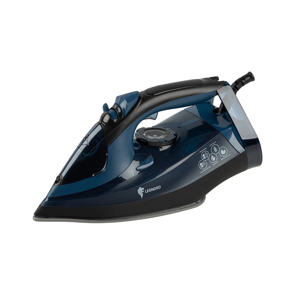 Утюг Leonord LE-1801 черно-синий 3000 Вт, пар, спрей, паровой удар, самоочистка, керамическая подошва 270079 предназначен для глажения белья, домашнего текстиля, одежды.Благодаря большой площади подошвы экономит время и обеспечивает равномерную подачу пара.Прост в использовании, за счет чего не требует специальных навыков.Устройство имеет эргономичную форму, поэтому удобно лежит в руке.Сухая глажка/спрей/пар/паровой удар/вертикальное отпаривание Индикатор нагрева Функция автоотключение Функция самоочистки Функция "капля стоп" Функция защиты от накипи Объем резервуара для воды 350 мл Паровой удар 0,4-0,8 г/ удар Подача пара 16-28 г/мин Регулировка подачи пара Шарнирное крепление шнура Длина сетевого шнура 1,8м Размер подошвы 22,9*12,3 см Зауженный носик Защита от перегрева Мерный стакан в комплектеГарантийный срок: 24 месяца
