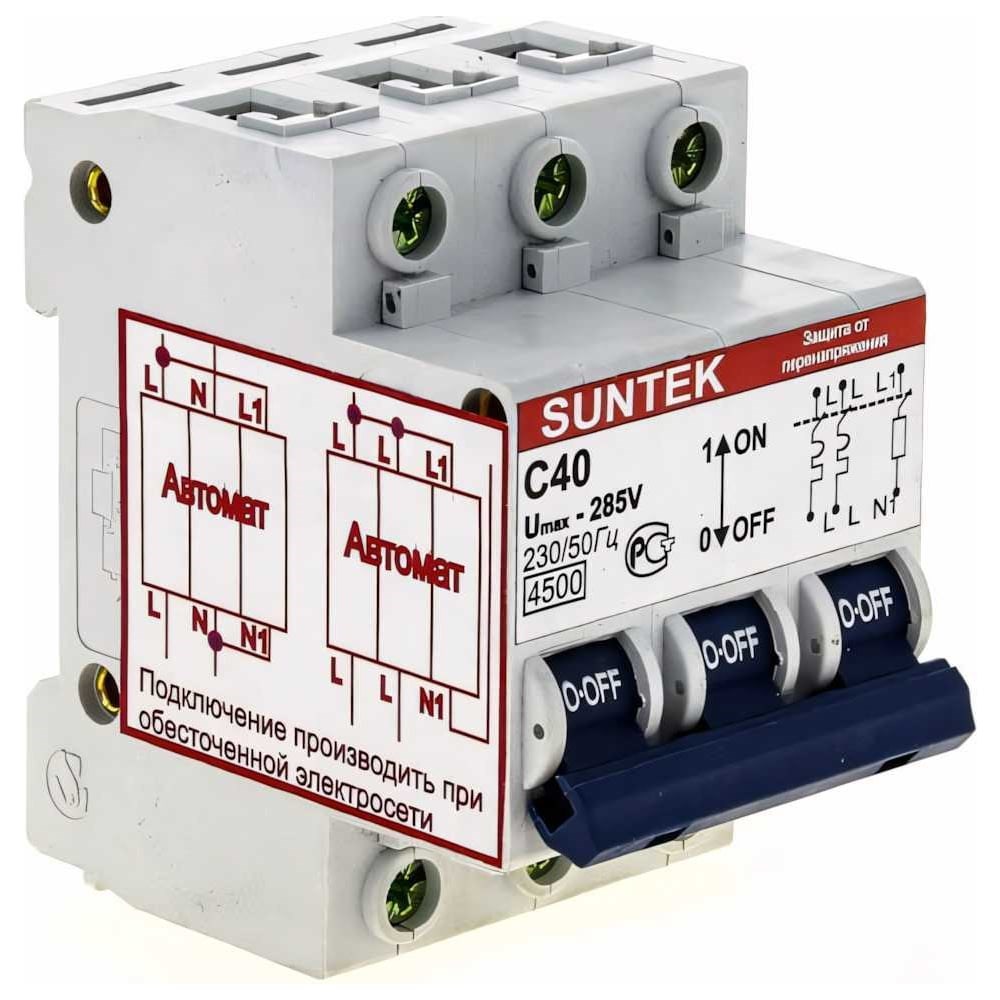 УЗОН 40А SUNTEK SK3.1_UZN40A - специализированное устройство защиты от отгорания нуля. Исключает риск возникновения перенапряжения в электросети при обрыве нулевого провода. Защищает различное оборудование от выхода из строя, а также препятствует возникновению ЧС при ошибочных действиях обслуживающего персонала.