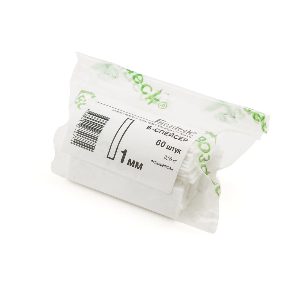 B-Спейсер Гвозdeck №1 60 шт. 6000B001PP00WG12 - это калиброванные по толщине прокладки, оригинальной формы, предназначенные для заполнение свободного пространства между новым ровным и старым неровным основаниями в нужной точке. В-спейсеры выполнены в виде сот из качественного полимерного материала, стойкого к перепадам температуры.