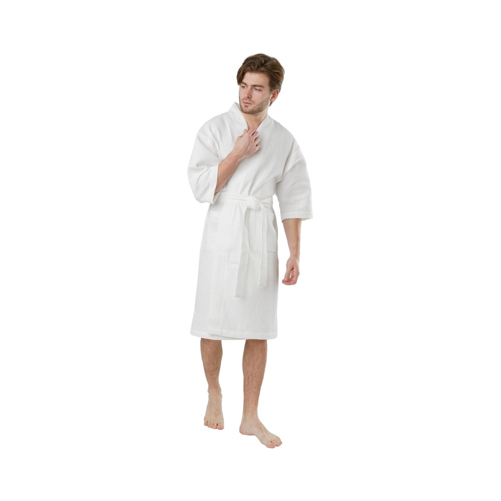 Халат идеально подойдет как для домашнего использования, так и для отелей и гостиниц, саун и бассейнов, фитнес-центров, СПА-салонов, салонов красоты. Вафельная ткань состоит из 65% хлопка и 35% полиэстера, обладает отличными гигиеническими свойствами, мгновенно впитывает влагу, быстро сохнет, дает минимальную усадку при соблюдении рекомендаций по уходу, превосходно пропускает воздух и позволяет коже дышать. Рекомендации по уходу: машинная стирка при температуре 30-40 градусов; барабанная сушка при низкой температуре. Условия хранения: хранить в сухих помещениях при положительной температуре на расстоянии не менее 1 м от отопительных приборов с предохранением от атмосферных осадков и влаги. Срок годности не ограничен при соблюдении условий хранения. Размер: 54-56 (2XL). Плотность ткани: 230 г/кв.м.