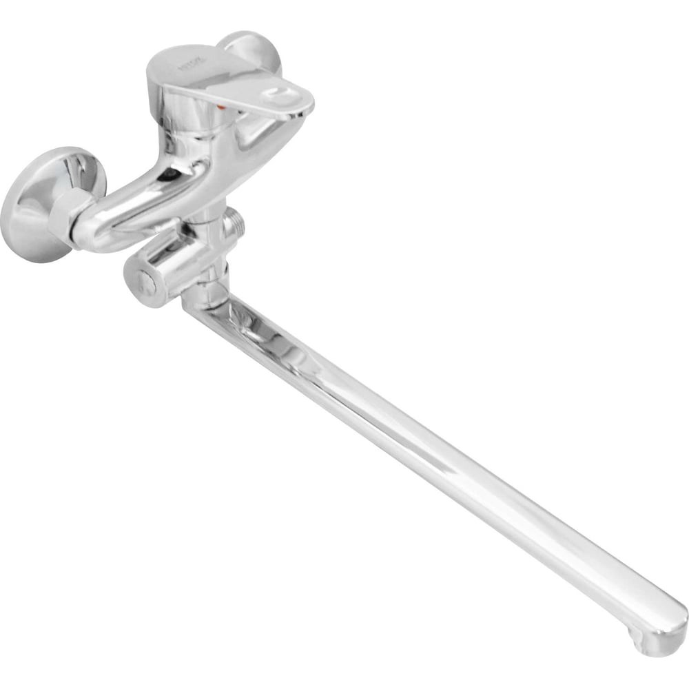 Ванно-душевой смеситель (кран) предназначен для использования в ванных комнатах городских квартир или частных домов, имеет современный дизайн и изготовлен из материалов и комплектующих, отвечающих современным стандартам качества. Данная модель представляет собой настенный смеситель с двумя монтажными каналами, которые помогают надежно зафиксировать его на стене, имеет тип подключения – жесткий, в комплекте для удобства монтажа есть эксцентрики и отражатели. Смеситель оснащен поворотным изливом прямой формы, эко-сеточка аэратора выполнена из долговечного ABS-пластика, насыщает воду кислородом. Такая конструкция излива (гусака) позволит направить водный поток как в ванну, так и в раковину. Смеситель не укомплектован лейкой и душевым шлангом, что позволяет без лишних затрат составить душевой комплект по своему вкусу и желанию. Корпус смесителя выполнен из прочного сплава алюминия с кремнием и оборудован выносным поворотным переключателем потока на душевую лейку, механизм переключения дивертора – картриджного типа. Регулировать температуру воды и выбирать оптимальный напор струи удобно посредством ручки - рычага. Запорный механизм смесителя - керамический картридж 35 мм в корпусе из экологичного АВС-пластика, который не выделяет вредных веществ под воздействием высоких температур. Все элементы конструкции смесителя устойчивы к коррозии, износу и механическим повреждениям, что продлевает период использования изделия.