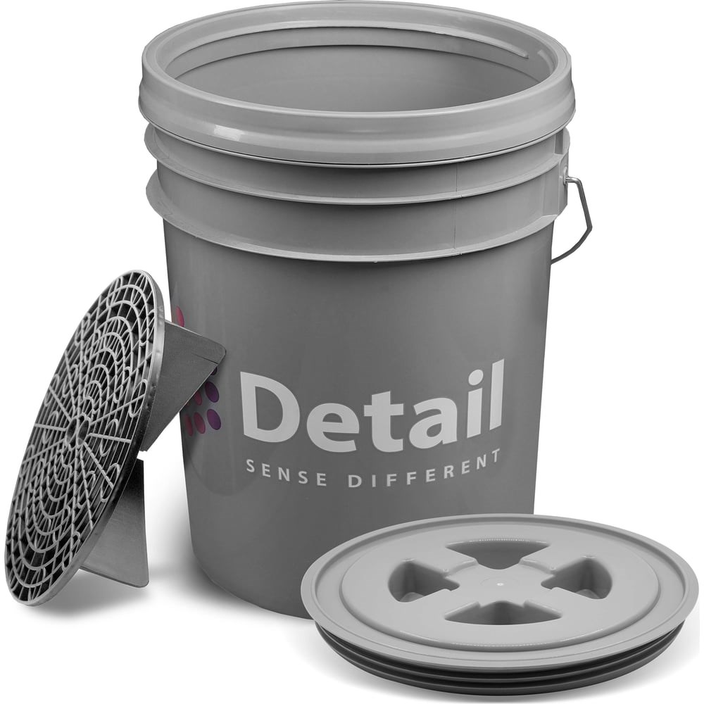 Ведро Detail серое DT-0223 предназначено для мойки автомобилей. Надежность. Изготовлено из ABS-пластика, благодаря чему отличается прочностью, устойчивостью к ультрафиолету и перепадам температур. Оснащено пескоотделителем, который удерживает песок и грязь на дне, а также обеспечивает удобство при работе. Для простоты переноса предусмотрена рукоятка.