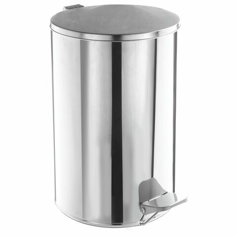 Ведро мусорное с педалью 10 литров, УСИЛЕННОЕ, кольцо под мешок, хром, нержавеющая сталь, ТИТАН