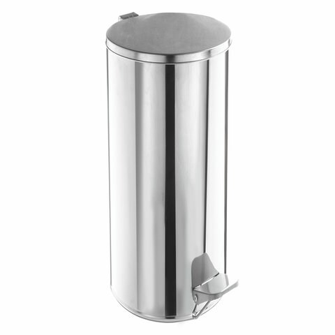 Ведро мусорное с педалью 30 литров, УСИЛЕННОЕ, кольцо под мешок, хром, нержавеющая сталь, ТИТАН