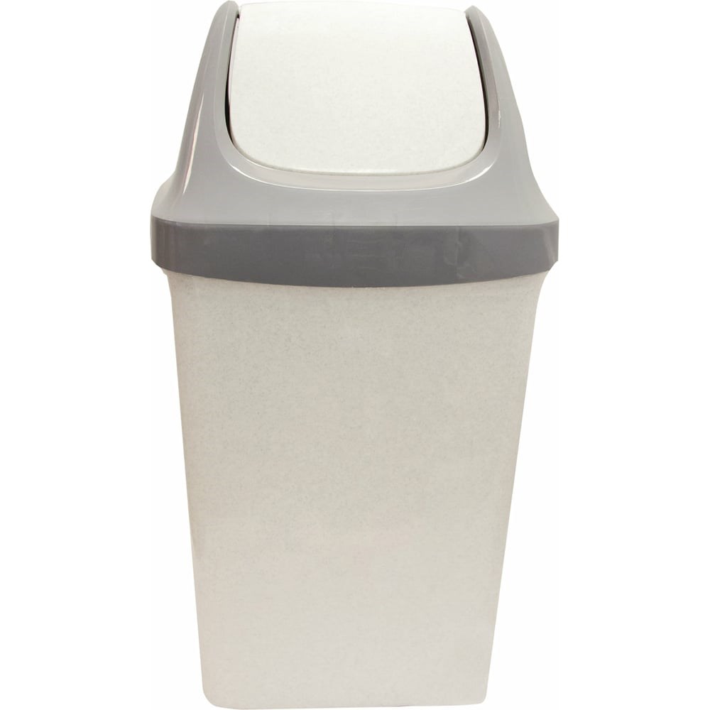 Ведро-контейнер для мусора IDEA Свинг 25 л, с крышкой (качающейся), 58x32x28 см, серое, М 2463 602549 используется для сбора бытового мусора дома и в офисных помещениях. Изготовлено из безопасного материала — полипропилена. За счет минималистического дизайна, нейтральной расцветки (серый мрамор), удачно смотрится в любом интерьере. Его можно поставить на кухню или в ванную комнату, санузел. Удобно для применения в загородных домах. Превосходно будет смотреться на веранде или террасе. Крышка ведра подвижна. Поэтому открывать ее для того, чтобы выбросить мусор, не потребуется. Соответственно, при выбрасывании отходов руки остаются чистыми. Чтобы удалить накопившийся внутри мусор полностью, нужно предварительно снять крышку. Поверхность ведра-контейнера гладкая, что упрощает его чистку в случае появления загрязнений. Избавиться от пыли, пятен можно с помощью смоченной в мыльной воде или моющем средстве ткани. Устойчивые загрязнения можно чуть потереть губкой. Во время пользования ведром рекомендуется вкладывать внутрь мусорные пакеты объемом 30-35 л.