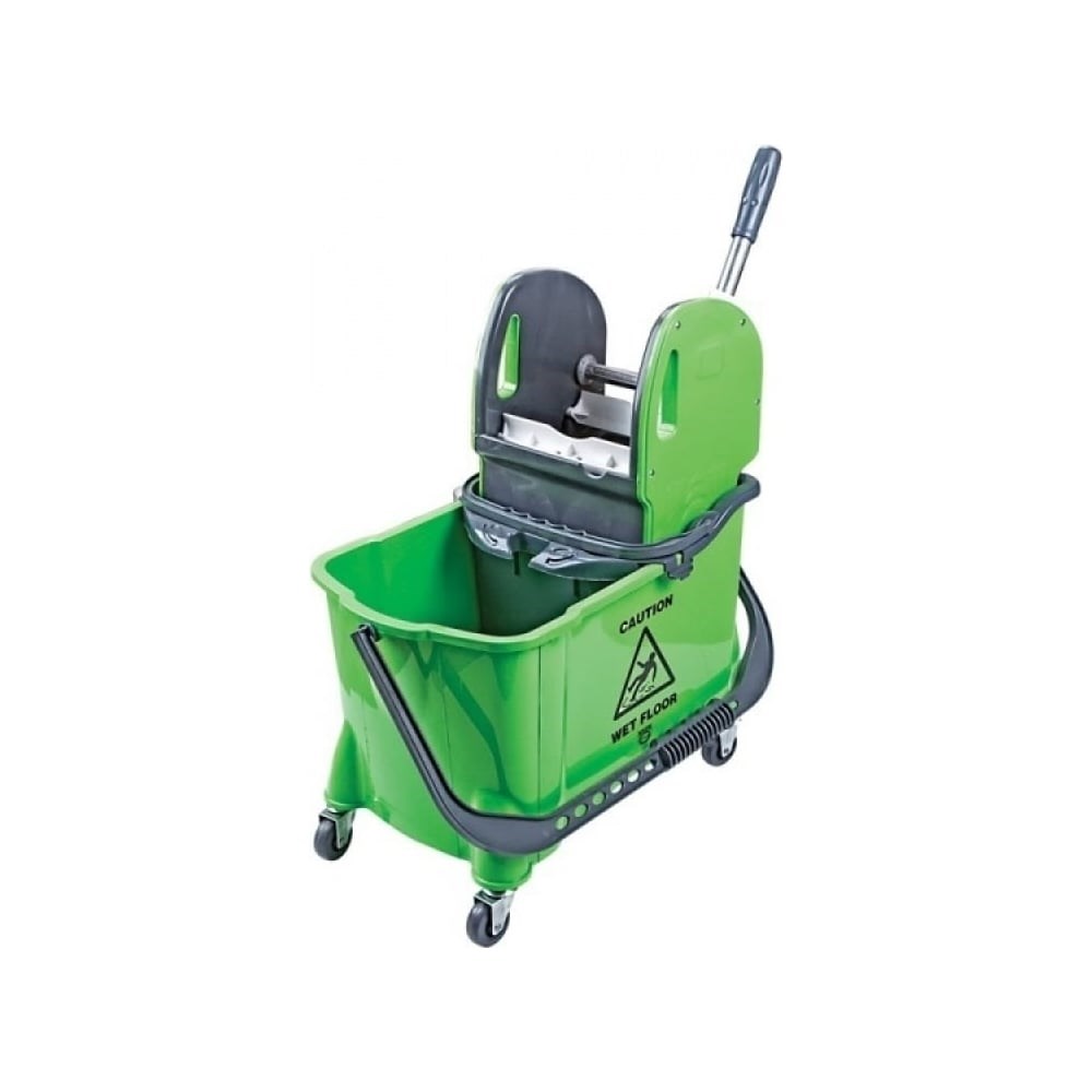 Одноведерная уборочная система на колесах. Включает пластиковое ведро 24 л, усиленный пластиковый отжим, под отжимом размещено маленькое ведро 6 л для грязной воды, колеса. Предназначена для профессиональной уборки в отелях, местах общественного питания, учебных и медицинских учреждениях, офисах, магазинах и т.д. Позволяет легко перемещать ведро с водой, экономя время и усилия. Идеальное соотношение цены и качества.