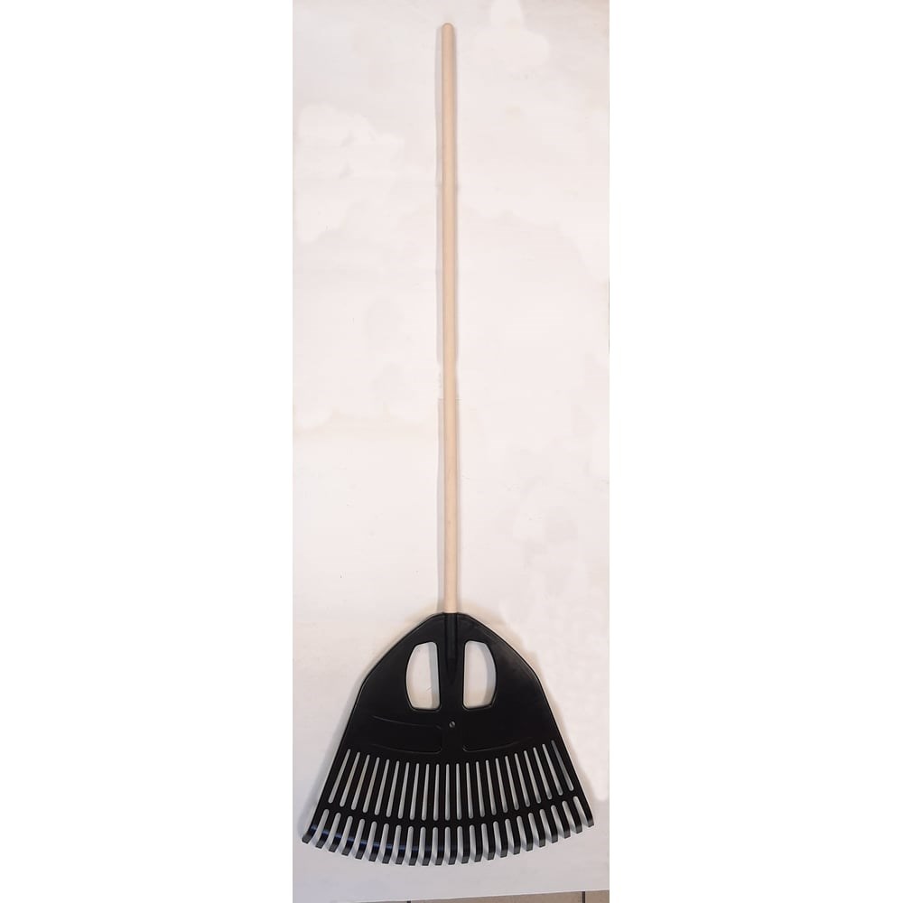 Грабли веерные пластмассовые с 23 плоскими зубьями усиленными ребрами жесткости, черные, с деревянным черенком 1 сорт длина 1200мм от производителя ООО “ПК Тандем-АГРО”. Грабли изготовлены из вторичного полипропилена.Предназначены для уборки листьев, мелкой скошенной травы, мелкого мусора на газонах, садовых и приусадебных участках.Легкие и удобные грабли будут незаменимым помощником на Вашем садовом участке!Внимание! Данная позиция поставляется в сборе с деревянным черенком Ф25мм 1 сорта длиной 1200мм.