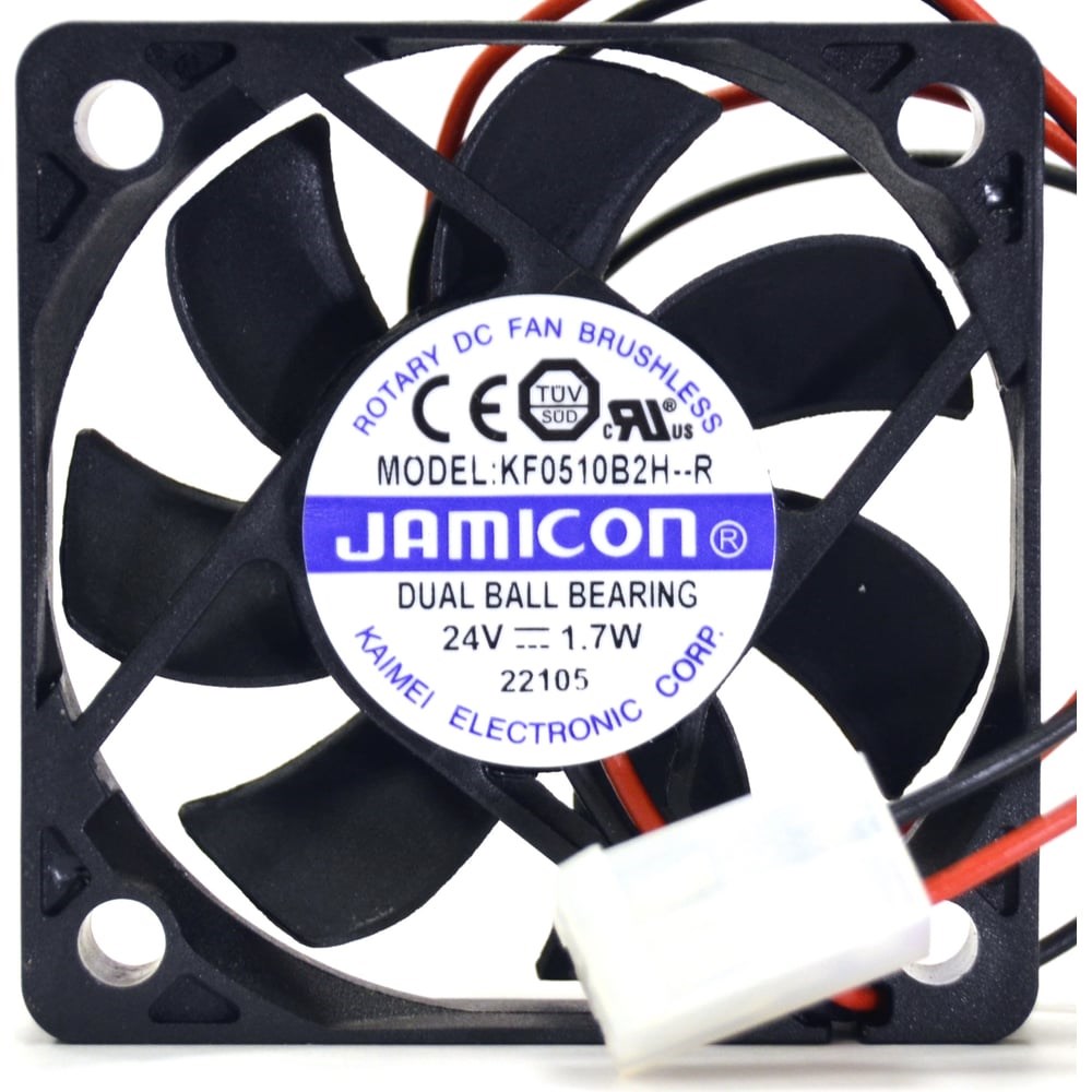 Дополнительные технические характеристики вентилятора JAMICON KF0510B2H 50х50х10 24В с разъемом 2 конт.MOLEX 5239-2(PHU-2) С00036612: Ток - 0,11 А. Выводы - разъем, 2 контакта. Лопасти - 7 шт. Скорость - 5200 об/мин. Материал рамы - пластик, цвет черный.