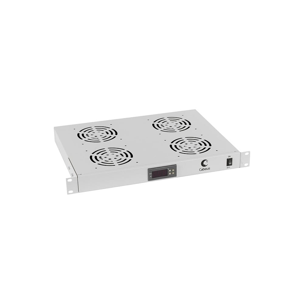 Вентиляторный модуль Cabeus, глубина 320 мм, 4 вентилятора, с цифровым термодатчиком, JG03t монтируется в телекоммуникационный 19" шкаф. Служит для охлаждения внутренней части изделия. Модель работает от сети 220В, к которой подключается с помощью шнура питания, входящего в комплект поставки. Модуль выполнен из ударопрочного металла и покрыт порошковой окраской. Дополнительные технические характеристики: Диапазон рабочих температур: от 1 до +40°С. Допустимая влажность: до 80%. Толщина металлического корпуса: 1,2 мм. Разъем питания для дополнительных вентиляторов: 2х IEC 320 C13. Шнур питания: Schuko CEE 7/7-С13. Разъем питания на корпусе: IEC 320 C14. Тип установки: на направляющие 19". Длина шнура питания: 1,5 м. Длина провода температурного датчика: 2 м. Min температура эксплуатации: -1.000 °С. Max температура эксплуатации: 40.000 °С.