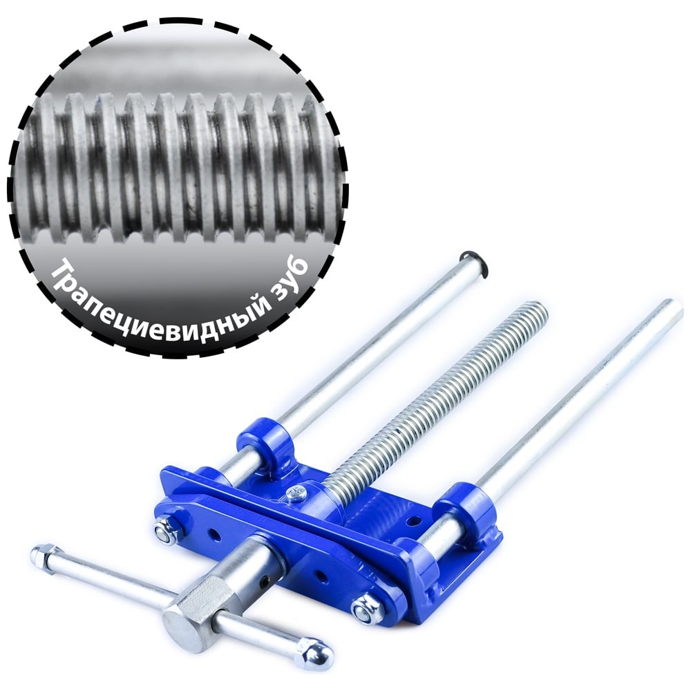Конструкция тисков представляет из себя открытый винт из высококачественной стали с трапецеидальной резьбой и два направляющих стержня заключенные в стальной каркас и планку. Общая конструкция гарантирует плавный и ровный ход тисков на основе этой винтовой пары. Тиски на этой винтовой паре обеспечивают крепкий и стабильный зажим, увеличивая производительность и качество работы, минимизируя риск деформации обрабатываемых материалов. Для поддержания винта в оптимальном рабочем состоянии рекомендуется регулярная чистка от стружки и пыли, а также смазка поверхности с помощью нейтральных смазочных материалов. Так же рекомендуем использовать веерные проставки при зажиме коротких и узких деталей.Общая длина: 370 ммВинт Tr 20x4 из стали 35Шаг винта: 4 ммРабочий ход: 255 ммВес: 4170 граммМатериал винта: высокопрочная стальМатериал направляющих: стальНа передней крепежной планке имеется 2 отверстия для фиксации деревянной губки тисков, на задней установочной планке - 4 отверстия для крепления к столешнице