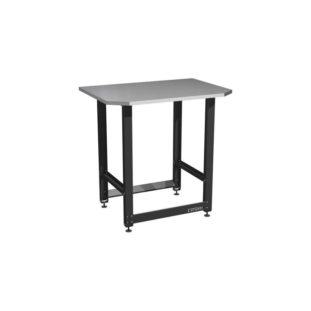 Верстак Small с траверсами для хранения мотоколес со столешницей из фанеры, покрытой оцинкованным листом металла, предназначен как для оборудования места хранения покрышек с разными техническими характеристиками, так и для универсализации рабочего места. Подойдет для слесарных, столярных работ, а также в качестве хозяйственного стола общего применения. Для хранения отвёрток, шила, пробойников и прочего инструмента, имеющего тонкое жало, имеются специальные отверстия в "карманах-перемычках" опор верстака, на которые удобно размещается лоток для инструментов. Рама стола изготовлена из стального П-образного профиля, окрашенного порошковой эмалью. Опорные площадки имеют диапазон регулировки высоты верстака, чтобы легко размещались не только колёса под столешницей, но и было бы комфортно работать людям высокого роста.