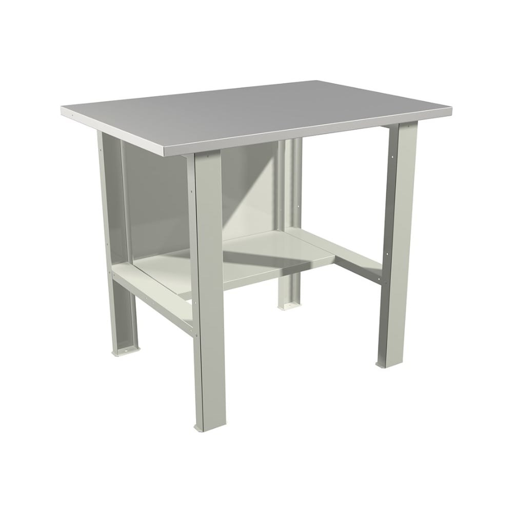 Верстак ПРАКТИК WT100.F1/F1.000 S30399502246 используется в качестве рабочего места ученика, сотрудника автосервиса или небольшой мастерской. Порошковая краска (серый шагрень RAL 7038) обеспечивает защиту элементов конструкции от образования коррозии. Материалом столешницы служит комбинация МДФ толщиной 24 мм и листа металла толщиной 1.2 мм с покрытием из цинка, что исключает случайное повреждение стола.