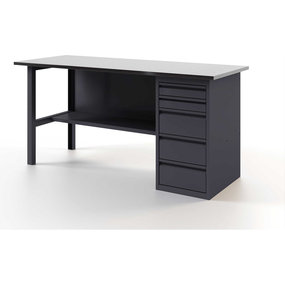 Верстак-стол - устойчивый, удобный, для слесарных, столярных работ, для производств и мастерских. Поставляется в разобранном виде. Крепкая и надежная конструкция столешницы из дерева и металла выдерживает нагрузку до 300 кг. Специальное полимерное покрытие на тумбах и полке защищает от коррозии и придает столу эстетичный вид. Надежная и прочная конструкция стола , позволяет выполнять даже силовые операции с инструментом и металлоизделиями. Столешница представляет собою плиту из МДФ толщиной 24мм, закрытую коробом из оцинкованного листа толщиной 1, 2 мм. Конструкции столешницы и короба разработаны таким образом, чтобы после сборки верстака на его рабочей поверхности отсутствовали неиспользуемые отверстия для крепежных элементов, головки болтов, заклепок и т. д. Поверхность наших столешниц идеально ровная. Это обеспечивает дополнительный комфорт пользователю. Опора для верстаков и столов из холоднокатаной стали 1, 5 мм. согнутой в П-образный профиль. Цвет серый RAL 7024.
