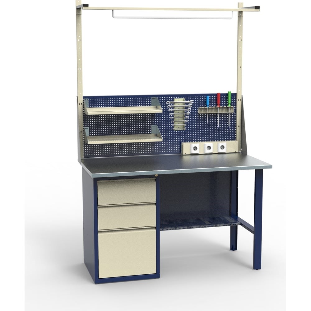 Верстак Святогор СВ-1Т.03.00.14_сб2(70285) представляет собой профессиональное решение для мастерских. Подходит для сложных слесарных работ. Можно использовать молоток - прочная столешница не боится ударов, не остаются следы. Сварная рама сохраняет жесткость конструкции. Металлические детали окрашены - дополнительная защита от коррозии.