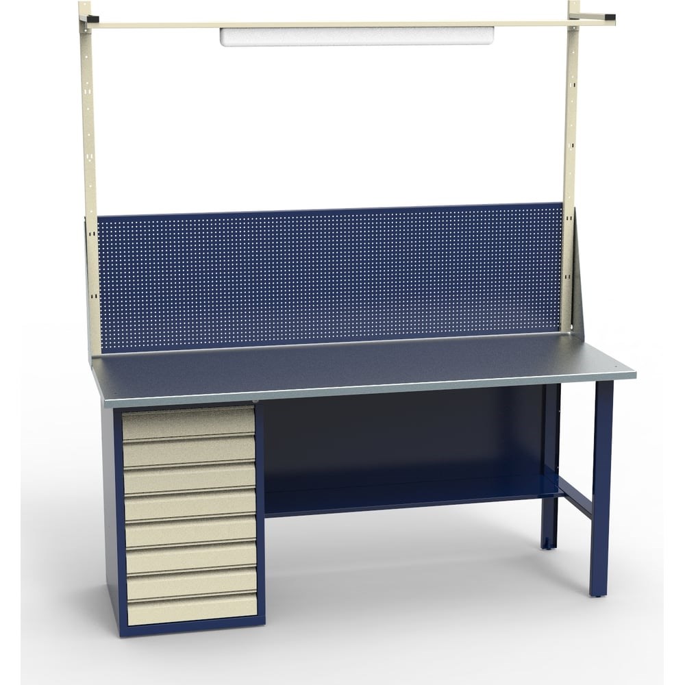 Верстак в комплекте Святогор СВ-1Т.08.00.19_сб1(70288) представляет собой профессиональное решение для мастерских. Подходит для сложных слесарных работ. Можно использовать молоток - прочная столешница не боится ударов, не остаются следы. Сварная рама сохраняет жесткость конструкции. Металлические детали окрашены - дополнительная защита от коррозии.