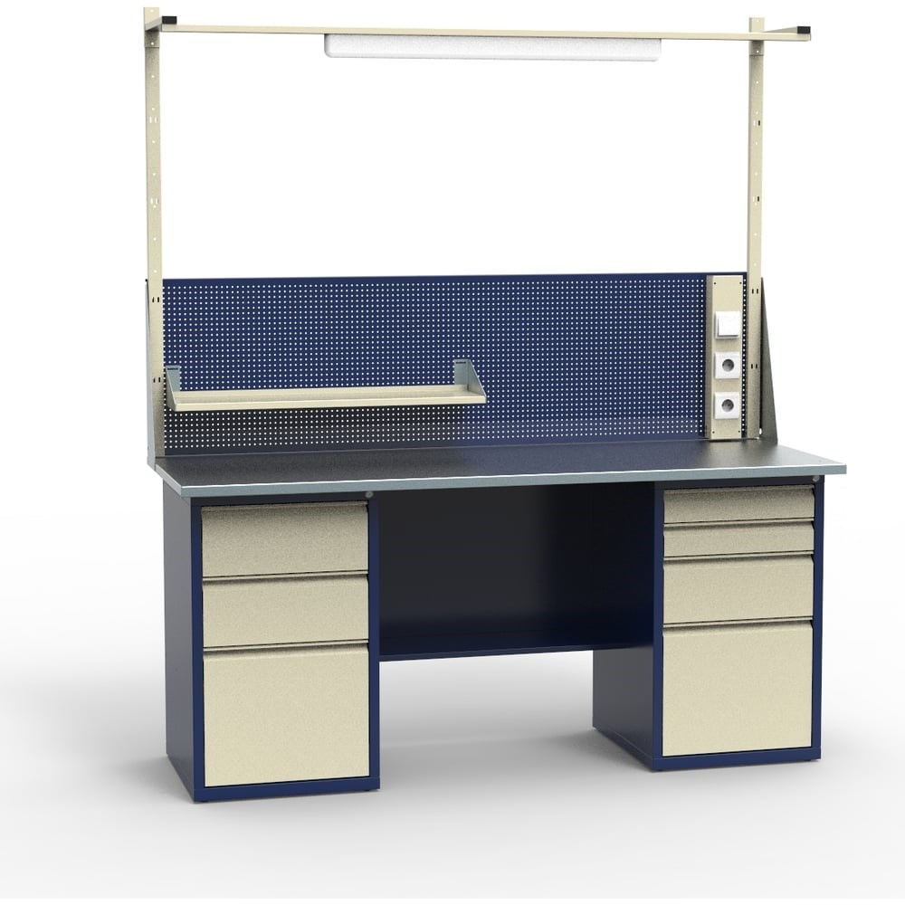 Верстак в комплекте Святогор СВ-2Т.03.04.19_сб1(70198) представляет собой профессиональное решение для мастерских. Подходит для сложных слесарных работ. Можно использовать молоток - прочная столешница не боится ударов, не остаются следы. Сварная рама сохраняет жесткость конструкции. Металлические детали окрашены - дополнительная защита от коррозии.