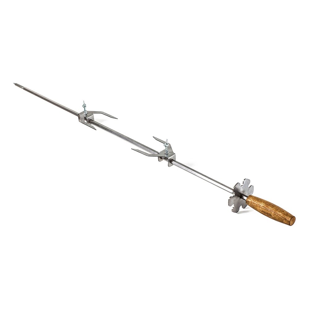 Вертел GRATAR Professional ВТ 1100 длиной 110 cм предназначен для приготовления на огне целой туши птицы и небольших животных. Конструкция вертела позволяет равномерно прогреть тушку со всех сторон, чтобы не осталось сырых и невкусных участков. Вертел легко крепится на опорах, а при транспортировке занимает немного места.
