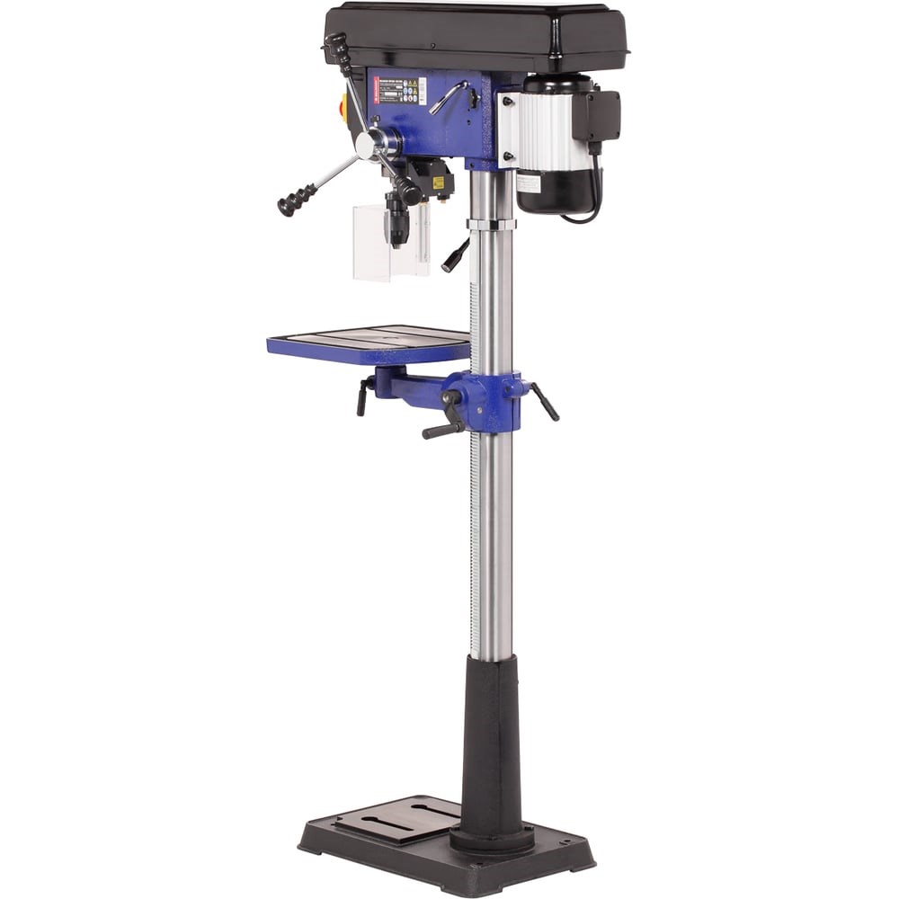 Станок предназначен для обработки различных материалов вращающимся режущим или шлифующим инструментом, с целью получения сквозных или глухих отверстий, растачивания, зенкерования. Станок мощностью 1100 Вт рассчитан на подключение к сети 380 В. Исполнение напольное. Стол, опора и корпус сверлильной головки выполнены из чугуна. Станок высокий – 1630 мм, подходит для обработки заготовок большой толщины. Максимальное расстояние между шпинделем и столом – 685 мм. Имеется шестнадцать ступеней частоты вращения шпинделя: от 160 до 3000 оборотов в минуту. Поэтому пользователь легко найдет нужную скорость для той или иной операции/материала.Переключение производится за счет переброски ремня - необходимо открыть крышку ременного отсека, ослабить барашек крепления двигателя, тем самым получив возможность смещения шкива, перекинуть ремень и проделать операцию в обратной последовательности.Станок оснащен реверсом, что позволяет использование как "левых", так и "правых" сверл, нарезать как "правую", так и "левую" резьбу.Заготовку можно крепить как к рабочему столу, так и к основанию, все зависит от ее размера. В комплекте предусмотрены тиски.Патрон быстрозажимной с максимальным диаметром зажимаемого хвостовика инструмента 16 мм, посадка В16. На колонне, ее диаметр 80 мм, имеется зубчатая рейка, положение стола настраивается с помощью рукоятки.
