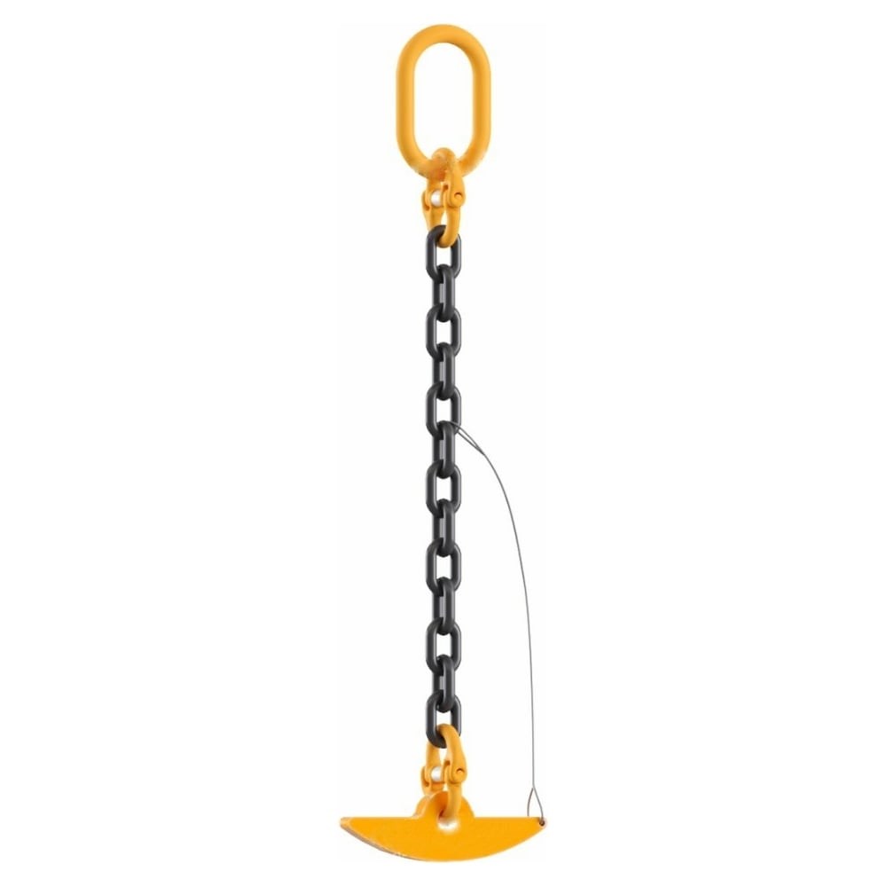 Вертикальный захват для барабанов TEHNOLIFT тип ZKV3, 3.2 т 4687202158775 на основе силовой планки и цепного стропа. Управляющий тросик позволяет удобно заводить и вынимать силовую планку в отверстие барабана. Подходит для большинства барабанов, имеющих отверстия с торцов и полую конструкцию.
