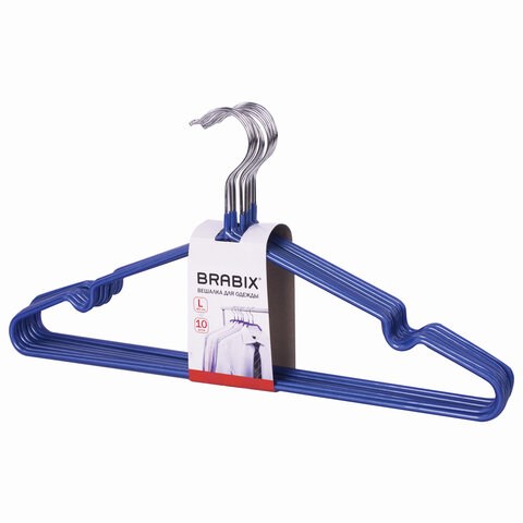 Вешалки-плечики, размер 48-50, КОМПЛЕКТ 10 шт., металл/ПВХ, перекладина, цвет синий, BRABIX "Стандарт", 601166