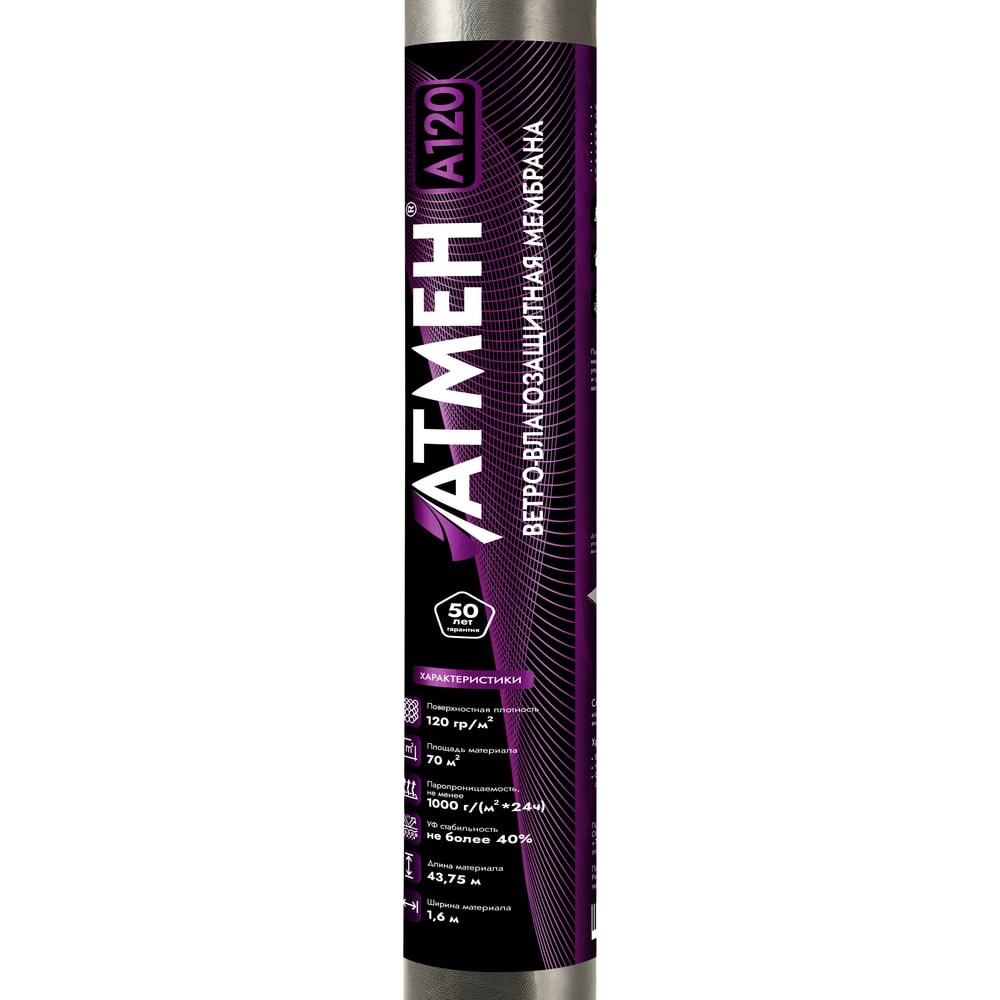 АТМЕН А 120 ветро-влагозащитная мембрана 1,6х43,75 (70 кв.м.) СТО 24942540-017-2023 предназначена для защиты утеплителя, внутренних элементов конструкций и стен зданий всех типов от холодного воздуха, ветра, конденсата паров атмосферной влаги. Применяется в конструкциях утепленных скатных кровель с любым кровельным покрытием и стен с наружным утеплением, в том числе в системах вентилируемых фасадов. Области применения: 1.Утепленные скатные кровли 2. Стены с наружным утеплением в малоэтажных зданиях 3. Вентилируемые фасады 4. Каркасные стены 5. Чердачные перекрытия 6. Межэтажные перекрытия 7. Цокольные перекрытия над вентилируемым подпольем
