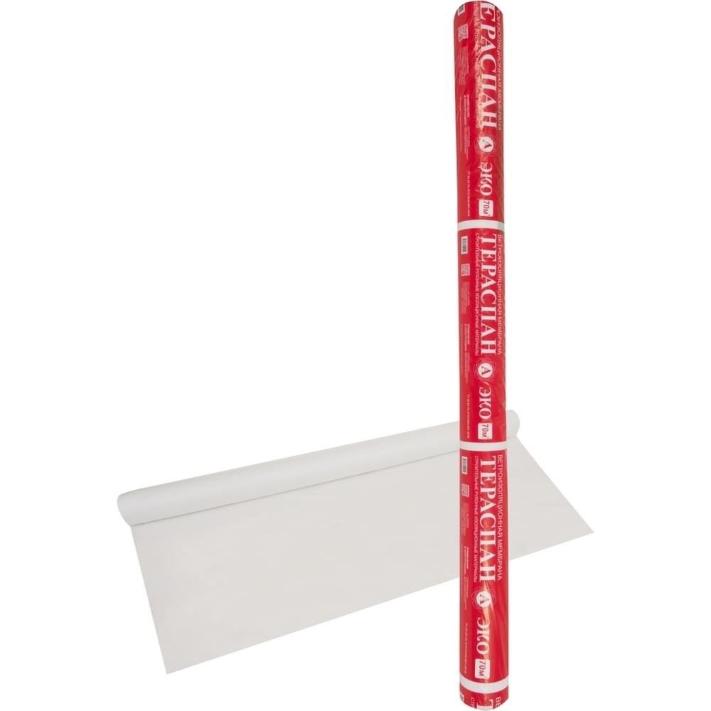 Ветроизоляционный материал ТЕРАСПАН А ЭКО 70 кв. м 4660077150150 применяется как подкровельная ветро-влагозащитная мембрана в утепленных кровлях с углом наклона свыше 35 градусов с различными покрытиями: металлочерепица, натуральная черепица, мягкие битумные плитки, профилированные листы и др. Устанавливается над утеплителем поверх стропил под обрешеткой. Изделие создано для защиты утеплителя и несущих элементов от подкровельного конденсата и как дополнительная защита от ветра. Область применения: Используют для защиты наружных стен малоэтажных зданий из бруса, щитовой, каркасной или комбинированной конструкции от воздействия атмосферной влаги и ветра во всех случаях применения внешней обшивки (вагонка, сайдинг) при наружном утеплении стен. Устанавливается с внешней стороны утеплителя под обшивкой здания. Служит для защиты утеплителя в конструкциях вентилируемых фасадов многоэтажных зданий с наружным утеплением. Предохраняет утеплитель от воздействия холодного воздуха, ветра, атмосферной влаги и снега, проникающих в вентилируемый зазор под внешнюю облицовку. Способствует испарению влаги из утеплителя. Внимание! В качестве временной кровли материал не применяется.