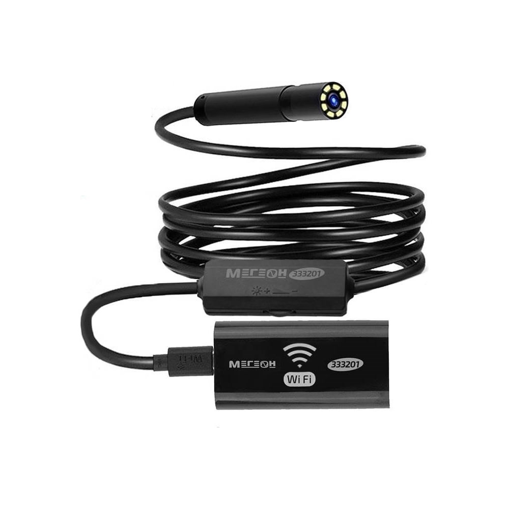 Видеоскоп МЕГЕОН 333201 к0000035914 осуществляет беспроводную передачу данных при помощи Wi-Fi. Размер изображения зависит только от диагонали экрана личного смартфона или планшета. Прибор может работать с большим количеством мобильных средств связи. Передатчик эндоскопа обеспечивает связь устройств на расстоянии от 5 до 30 метров. Видеонаблюдение обеспечивается пыле- и влагозащищенной камерой диаметром 8 мм. Яркая светодиодная подсветка высокой интенсивности гарантирует прекрасную видимость в полном отсутствии освещения. Программное обеспечение позволяет эксплуатировать совместно с операционными системами на базе Android, IOS и Windows. Необходимое приложение доступно для скачивания без ограничения в Play Market, APP Store и на сайте компании. Для работы с персональным компьютером требуется обязательное наличие функции Wi-Fi.