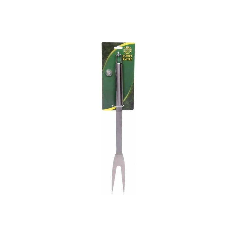 Вилка выполнена из высококачественной нержавеющей стали, что обеспечивает её прочность и долговечность. Вилка оснащена двумя зубцами, которые позволяют легко переворачивать продукты во время приготовления, а также удобной ручкой для безопасного использования. С помощью этой вилки вы сможете легко контролировать степень прожарки мяса или овощей, сохраняя их вкус и сочность.