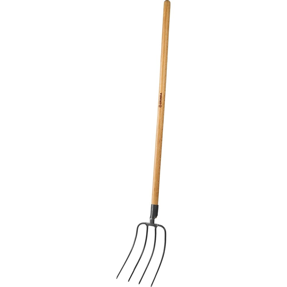 Вилы для компоста с деревянным черенком Grinda PROLine 315x220x1500 мм 39729 применяются на садово-огородных участках, в сельском хозяйстве, в строительстве, для переноски сена, соломы. Рабочая часть состоит из 4 заострённых зубцов из углеродистой стали с защитным покрытием. Прочный черенок из твёрдой древесины покрыт лаком. В комплект поставки входит чехол из ПВХ, обеспечивающий защиту рабочей части при хранении и транспортировке.