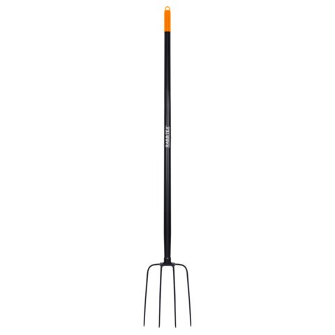 Максимальная надежность обеспечивается цельной конструкцией из стали, прошедшей специальную закалку. Инструмент способен выдержать любые нагрузки при длительной работе без потери прочности. Вилы оснащены 4 острыми стальными зубьями, расположенными под оптимальным углом для эффективной работы с любыми материалами.