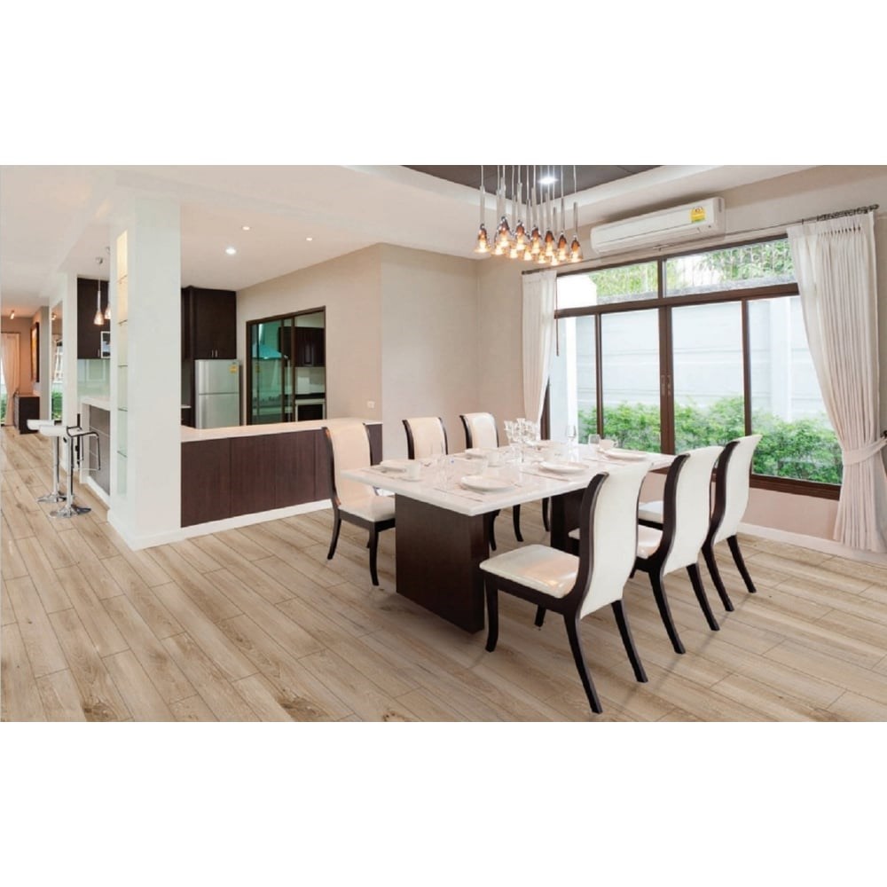 SPC виниловый ламинат Royce CronaFloor Gamma 100 влагостойкий, 42 класс износостойкости, 2.16 м2 G002 – одна из самых недорогих коллекций замкового винилового ламината на основе SPC (композитный материал состоящий на 78 карбоната кальция и 22 винила (первичного ПВХ). Толщина планки составляет 3,5 мм, толщина защитного слоя – 0,15 мм. Каменно-полимерный композит очень плотный (в 2 раза плотнее кварцвинила и WPC), практически без ячеек воздуха. Повышенная плотность дает твердость материалу, увеличенную прочность замкам, а также термостабильность. Термостабильность ПВХ плитки CronaFloor Gamma допускает укладку бесклеевым способом на большой площади без разрывов (до 15×15 м²). Плитка CronaFloor (Ройс) Гамма совместима с любыми системами теплого пола (до +28 °C). Материал на 100 водостойкий. Декоры выполнены без фаски по периметру доски.