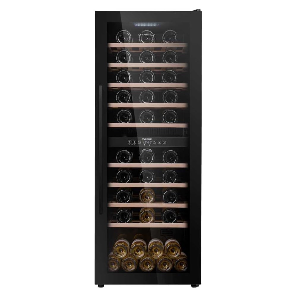 Современный винный шкаф MFWC-201D77 – инновационное решение проблемы качественного хранения вина. Расширенная функциональность, изысканный дизайн, полноценная имитация условий «винного погреба» – всё это винный шкаф MFWC-201D77. В нем можно хранить до 77 бутылок при температуре от 5 ° C до 22 ° C. Напитки нужной температуры, всегда готовые к подаче. Храните самые разнообразные сорта вин Широкий температурный диапазон винного шкафа (от 5 ° C до 22 ° C) позволит хранить красные, белые и игристые вина, а также подготавливать их к подаче. Винный шкаф MFWC-201D77 в полной мере обеспечивает сохранность вина при правильной температуре, позволяет напитку дозревать, раскрывая его вкус и аромат. Продуманное внутреннее пространство. Внутреннее пространство рассчитано на хранение до 77 бутылок. При желании можно извлечь полку и разместить большее количество бутылок. Для размещения винных бутылок, шкаф оснащен 9 крепкими полками из массива бука. Универсальный винный шкаф для любого интерьера Изысканный дизайн модели делает её абсолютным выбором большинства: корпус выполнен из металла, окрашенной в чёрный цвет. Современная технология освещения зоны позволит вам в любое время эффектно продемонстрировать вашу винную коллекцию гостям. Каждая деталь модели гармонично дополняет друг друга, делая винный шкаф универсальным под любые стили интерьера. Дверца шкафа выполнена из тонированного стекла с защитой от УФ лучей. Сенсорная панель управления Управляйте всеми функциями винного шкафа с помощью интуитивно-понятной сенсорной панели управления одним касанием пальца. Шкаф имеет две зоны, для каждой из них можно задать свой режим охлаждения — это актуально для тех, кто планирует хранить дома разные виды напитка: красное, белое, шампанское. Эффективная циркуляция воздуха Шкаф оснащён внутренним вентилятором для равномерного распределения холодного воздуха ко всем полкам шкафа.