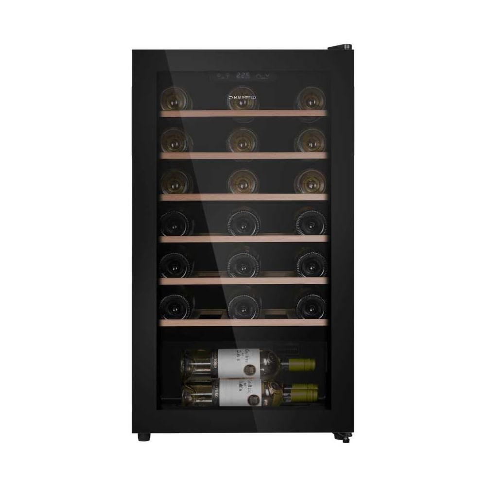 Современный винный шкаф MFWC-85S34 – инновационное решение проблемы качественного хранения вина. Расширенная функциональность, изысканный дизайн, полноценная имитация условий «винного погреба» – всё это винный шкаф MFWC-85S34. В нем можно хранить до 34 бутылок при температуре от 5 ° C до 20 ° C. Напитки нужной температуры, всегда готовые к подаче. Храните самые разнообразные сорта вин Широкий температурный диапазон винного шкафа (от 5 ° C до 20 ° C) позволит хранить красные, белые и игристые вина, а также подготавливать их к подаче. Винный шкаф MFWC-85S34 в полной мере обеспечивает сохранность вина при правильной температуре, позволяет напитку дозревать, раскрывая его вкус и аромат. Продуманное внутреннее пространство. Внутреннее пространство рассчитано на хранение до 34 бутылок. При желании можно извлечь полку и разместить большее количество бутылок. Для размещения винных бутылок, шкаф оснащен 6 крепкими полками из массива бука. Универсальный винный шкаф для любого интерьера Изысканный дизайн модели делает её абсолютным выбором большинства: корпус выполнен из металла, окрашенной в чёрный цвет. Современная технология освещения зоны позволит вам в любое время эффектно продемонстрировать вашу винную коллекцию гостям. Каждая деталь модели гармонично дополняет друг друга, делая винный шкаф универсальным под любые стили интерьера. Дверца шкафа выполнена из тонированного стекла с защитой от УФ лучей. Сенсорная панель управления Управляйте всеми функциями винного шкафа с помощью интуитивно-понятной сенсорной панели управления одним касанием пальца. Эффективная циркуляция воздуха Шкаф оснащён внутренним вентилятором для равномерного распределения холодного воздуха ко всем полкам шкафа.