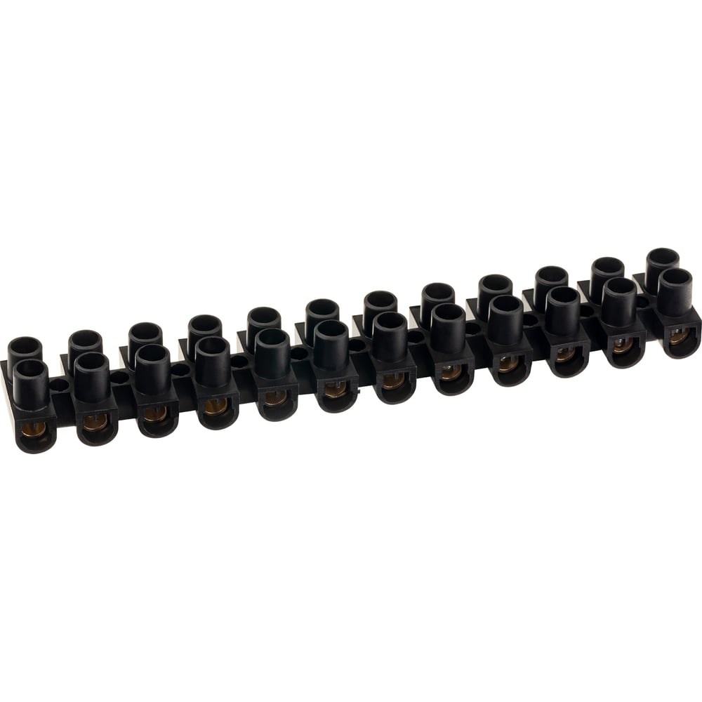 Винтовая клемма 12 пар ЗВИ-5 предназначена для винтового соединения проводников. Она надежно защищает провод от повреждения и исключает возможность замыкания на корпус электроустановки. Каркас зажима выполнен из негорючего полипропилена, а клемма и винты из латуни. Винтовая клемма позволяет безопасно и надежно соединять между собой несколько проводов с сечением от 2,5 до 6мм2. Используется в цепях переменного и постоянного тока до 400В. Рабочая температура от -25С до 100С. Номинальный ток: 6А. Винтовая клемма обладает следующими ПРЕИМУЩЕСТВАМИ: при необходимости можно разделить на нужное число контактов; конструкция винтового зажима обеспечивает большую площадь и качество контакта, успешно противостоит различным нагрузкам, ударам и вибрации; в зажимы винтовых клемм подключаются проводники, оконцованные различными наконечниками. ОСОБЕННОСТИ ПОДКЛЮЧЕНИЯ: одножильные проводники могут быть подключены без наконечников; многожильным проводам необходим наконечник. Есть возможность подключения к одному зажиму нескольких проводников. Особенность конструкции винтового зажима защищает винт от самораскручивания, поэтому прижим контакта не ослабевает со временем.