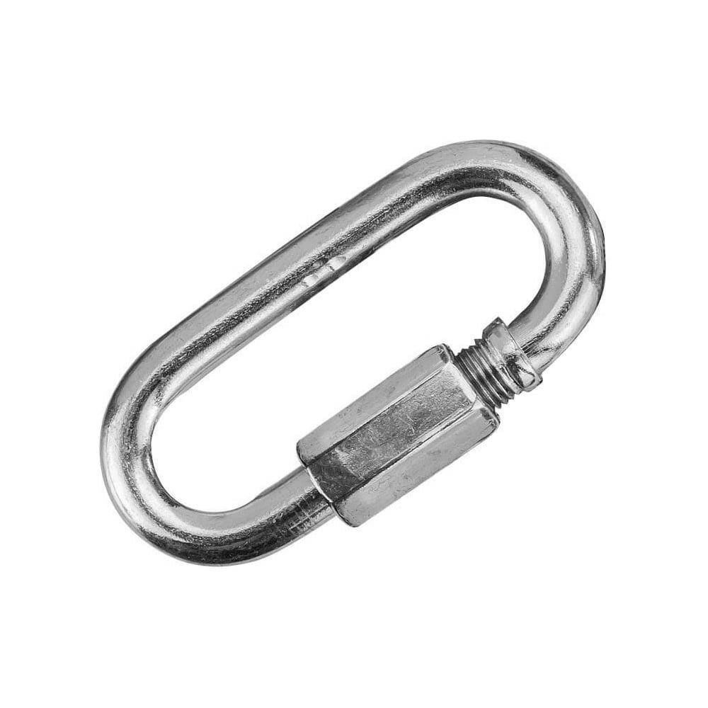 Карабин винтовой предназначен для соединения цепей между собой.Карабины изготовлены из углеродистой оцинкованной стали. Размер определяется по диаметру поперечного сечения проволки. Производитель: Китай.Карабин винтовой стальной (с муфтой) в форме овала широко используется в качестве соединительной детали между различными такелажными приспособлениями и элементами специального снаряжения. Его применяют для наращивания длины и ремонта цепных ветвей. Соединитель цепи оснащен винтовым фиксатором с внутренней резьбой, который накручивается на конец скобы и надежно запирает устройство. Для большей безопасности шестигранную муфту затягивают ключом. Карабин для цепи производится из оцинкованного прута диаметром от 3,5 до 16 мм. При выборе обязательно нужно учитывать предполагаемую рабочую нагрузку на соединение. В грузоподъемных операциях не используется.