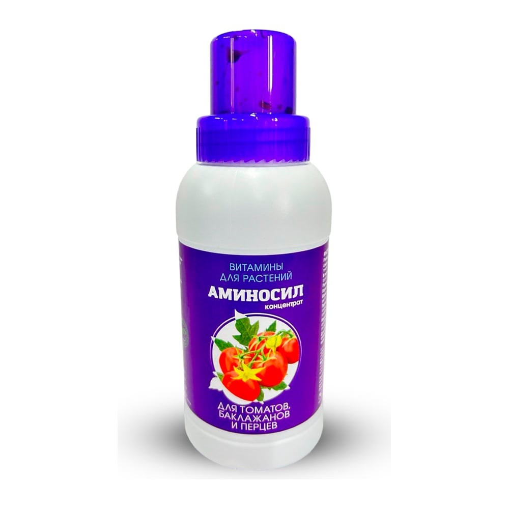 Идеально подходит для ухода, питания и удобрения томатов, баклажанов и перцев всех сортов:Витаминная поддержка для сбалансированного развития рассады без перерастания;Укрепляет иммунитет и защищает от болезней;Укрепляет завязи и увеличивает скорость созревания плодов;Вкусный и полезный урожай без химии;Безопасен для людей и животных. 100% ОРГАНИЧЕСКИЙ СОСТАВ Состав: Азот - 1,5%, Фосфор - 2%, Калий - 2,3%, магний, железо, кальций, медь, цинк, марганец, сера, бор, молибден, гуминовые вещества 40+ аминокислот Инструкция по применению: Расход: 10 мл концентрата для замачивания 20 мл концентрата для рассады и взрослых томатов АМИНОСИЛ разбавить в 1 л воды до образования однородного раствора. Семена: замачивать семена в получившимся растворе в течении 6 часов перед посевом в грунт. В период рассады: поливать получившимся раствором растения до смачивания грунта в емкости. Периодичность: 1 раз в месяц. Взрослые растения: Вариант 1: поливать в открытом и закрытом грунте из расчета 1-4 л на 1 растение до равномерного смачивания грунта. Периодичность: до цветения - 1 раз в 2 недели; в конце сезона - 1 раз при наличии не зрелых плодов для ускорения созревания урожая. Вариант 2: опрыскивать растения получившимся раствором перед цветением 1 раз в 2 недели до полного смачивания листьев. Для обработки путём опрыскивания допускается снижение концентрации до 10 мл АМИНОСИЛ на 1 л воды.