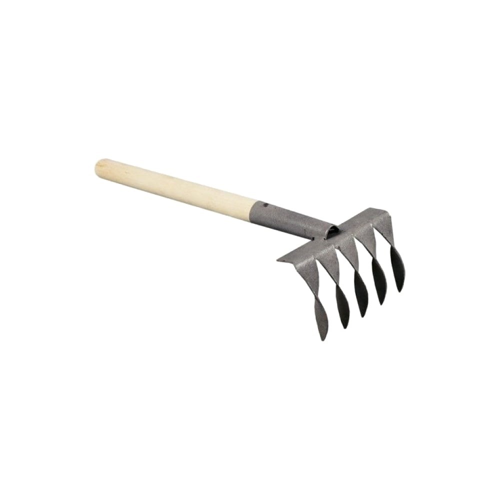 Витые 5-х зубые грабли с деревянной ручкой ЗМИ ГВ-5 24 используют на садово-огородных участках и парковых зонах для обработки территорий от листьев, скошенной травы и остального мусора, ими можно рыхлить вскопанные участки почвы, выравнивать клумбы и грядки в весенний и осенний период. Грабли изготовлены из конструкционной углеродистой стали с антикорозионным покрытием из порошковой краски. Данная модель имеет пять витых зубьев и оснащена деревянным черенком, компактная и удобная в работе.