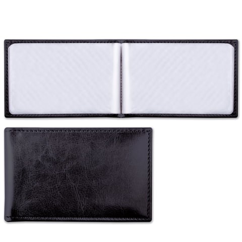 Мягкая обложка из кожзама с текстурой под гладкую кожу прошита по периметру. Подходит для тиснения фольгой и горячего тиснения. Содержит 10 карманов из мягкого ПВХ на 20 визитных карточек или 10 кредитных и дисконтных карт. Размер изделия – 110х70 мм.