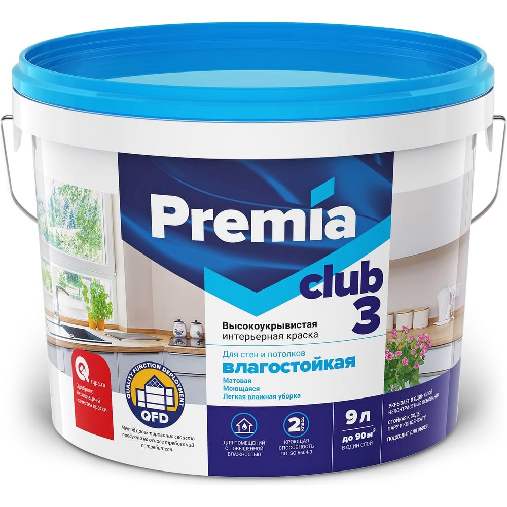 Влагостойкая краска для стен и потолков Premia Club CLUB