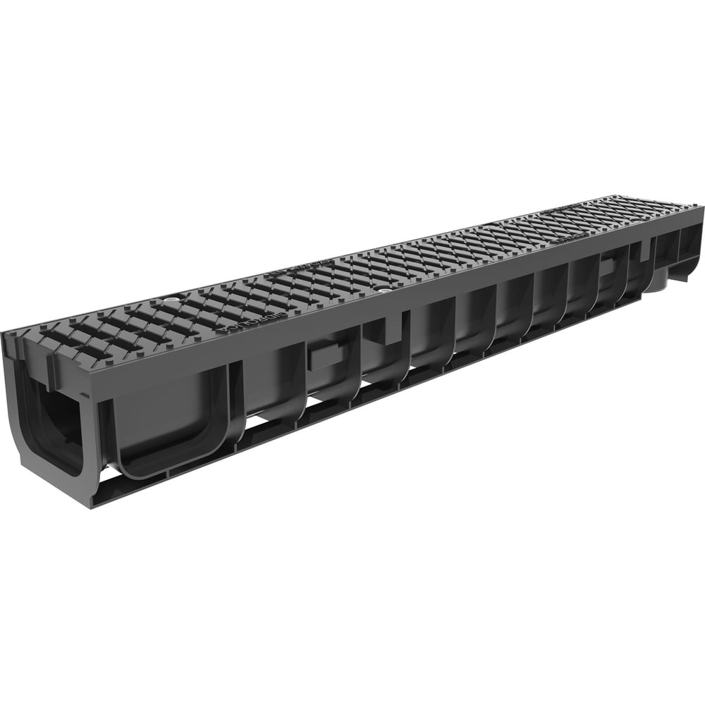Лоток водоотводный Gidrolica Pro 1000х145х117 мм в сборе с полиамидной решеткой предназначен для поверхностного водоотвода ливневых и талых вод в зонах проезда легковых автомобилей, т.е. на въезде в гараж, на въезде на участок, в зоне парковки легковых автомобилей. Комплект лотка с пластиковой решеткой – это готовое к установке решение, имеет возможность соединения их между собой в линию требуемой протяженности. Выпуск собранной воды осуществляться путем подключения канализационной трубы Ф110 мм к специально предусмотренному фланцу в дне лотка. При необходимости возможно осуществить угловое соединение данных лотков с помощью специального фланца для углового соединения расположенного на боковых поверхностях лотка. Заглушить торцы лотка можно универсальной заглушкой для лотков DN100. Преимуществом данного лотка в сборе с полиамидной решеткой является надежная решетка не подверженная коррозии, имеющая привлекательный внешний вид, и несущая нагрузку легковых автомобилей (класса С250). В комплектацию входят стальные оцинкованные крепежи. Это надежное болтовое крепление для обеспечения безопасного движения легкового транспорта через данные водоотводные лотки. Лоток рекомендуется устанавливать в бетонное основание согласно рекомендаций производителя.